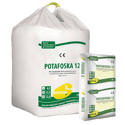 ПОТАФОСКА 12 – багатокомпонентне мінеральне добриво, що містить поживні речовини у формі, яка легко засвоюється рослинами. Це добриво призначене переважно для підживлення озимих зернових та озимого ріпаку. Його також можна ефективно використовувати для всіх ярих культур, доповнюючи азотом відповідно до потреб культивованих видів рослин. Добриво містить сірку, необхідну для побудови білків.